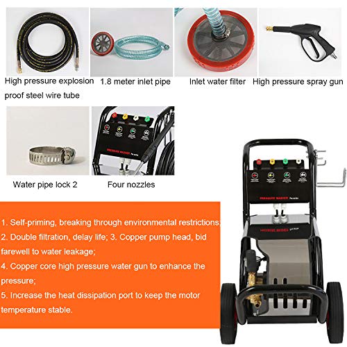 ■ JETS DE LAVADORA DE COCHES: las piezas completas de la máquina están completas; impulso de alta presión, rendimiento estable, agua fuerte, lavado limpio; múltiples tipos de agua, cambiar libremente; Equipado con dos métodos de toma de agua, agua externa, absorción de agua propia.