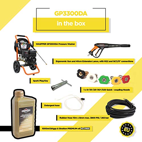 ✦ HIDROLIMPIADORA A PRESIÓN DEFINITIVO: ¡Use su hidrolimpiadora profesional de gasolina completamente nuevo desde el primer momento! Incluso le damos 0.6L de aceite de motor 10w40 GRATIS. Todo viene con 24 meses de garantía del fabricante. ¡Ordene ahora, el envío es pagado por nosotros!